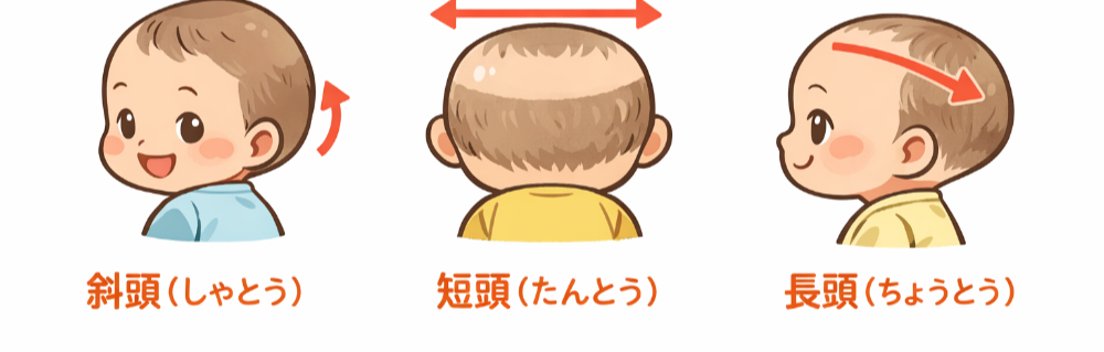 後頭部が平らで、横に広がって見える状態。